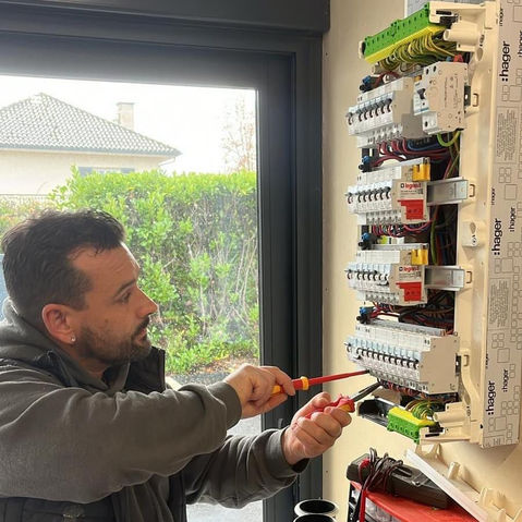 Découvrez nos services complets en électricité ! De l'installation de pompes à chaleur à la pose de panneaux photovoltaïques, en passant par le dépannage, la rénovation et les chantiers neufs, nous sommes votre partenaire de confiance pour tous vos besoins en électricité générale.